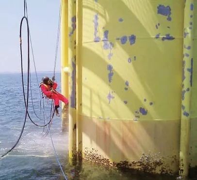 避免腐蚀的另一种常用方法是在钢结构表面施以由环氧树脂构成的防腐涂层来隔绝海水。目前,海上风电的防腐常将这两种方法结合起来,在涂料中加入大量锌粉或铝粉,成为牺牲阳极。一旦涂层的阻隔作用削弱,就用牺牲阳极来保护。