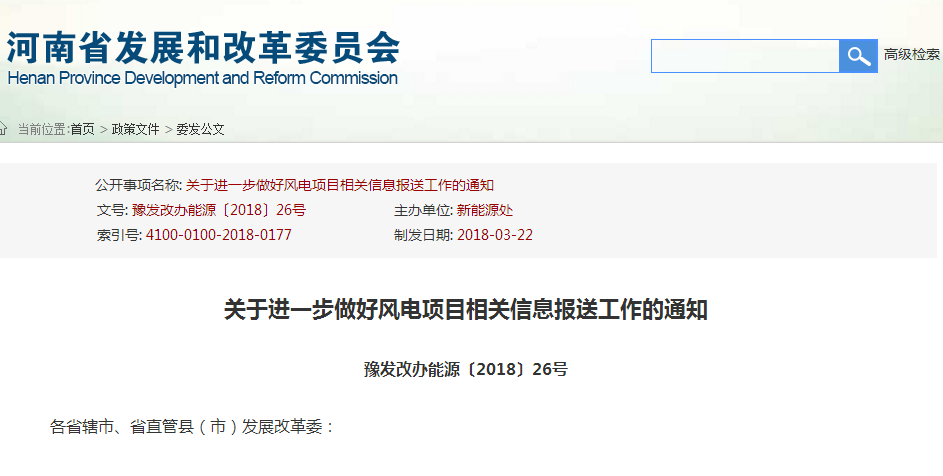 近期我委《关于2017年河南省风电项目建设情况的通报》(豫发改能源〔2017〕1328号)下发后,各地迅速行动、积极作为,有力的推动了我省风电建设健康有序发展。为进一步深化放管服,加强风险管控,完善风电项目监测通报制度,现将有关工作要求通知如下: