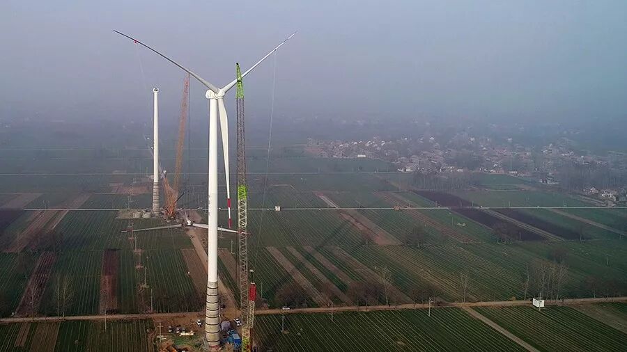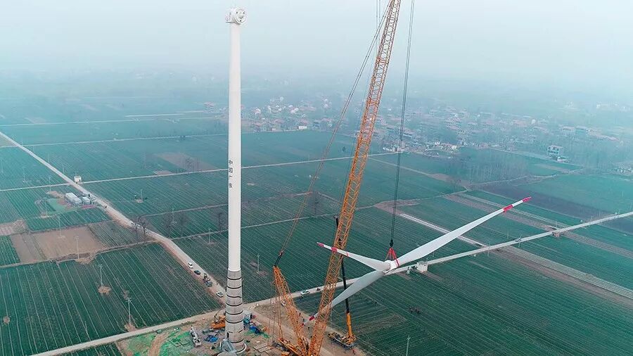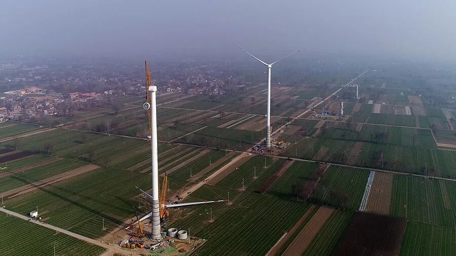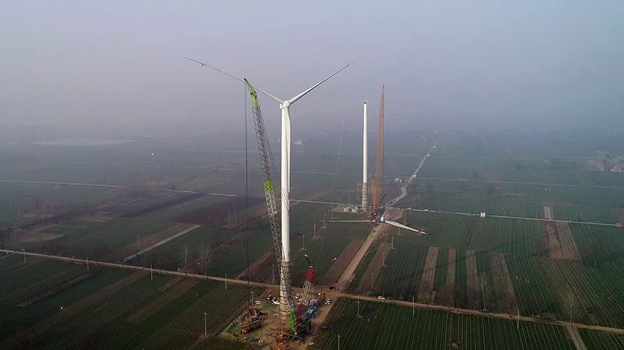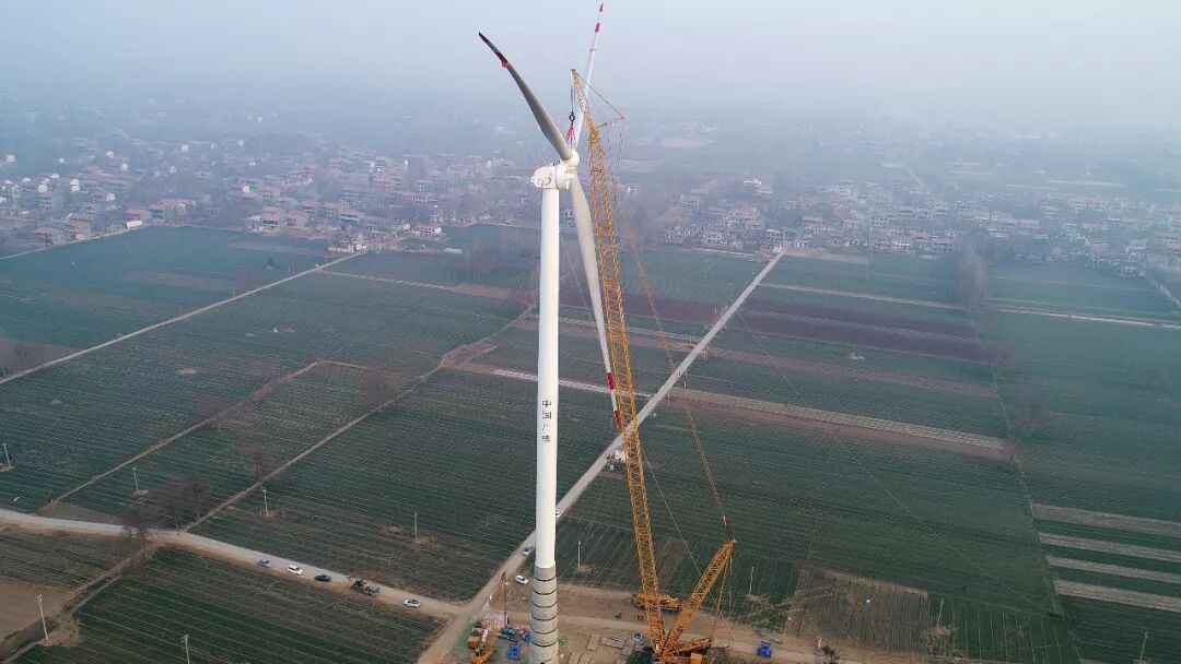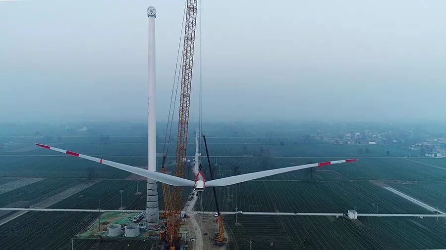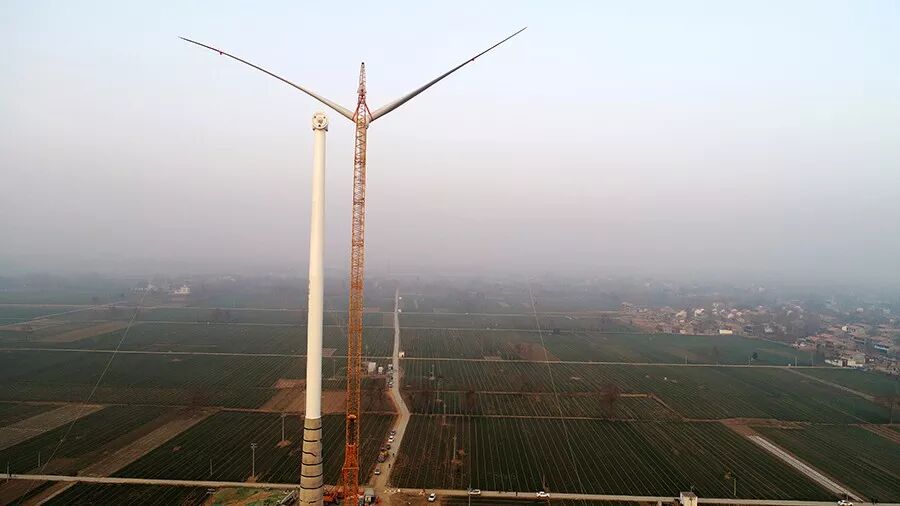 2018年1月1日清晨7:30,河南省兰考县。伴随着新年清晨第一轮朝阳,新疆金风科技股份有限公司(下称“金风科技”)为中广核新能源有限公司(下称“中广核”)投资开发的兰考兰阳分散式风电场提供的金风机组吊装完成,这同时标志着河南地区首批120m钢混塔机组顺利安装。